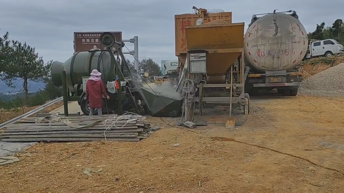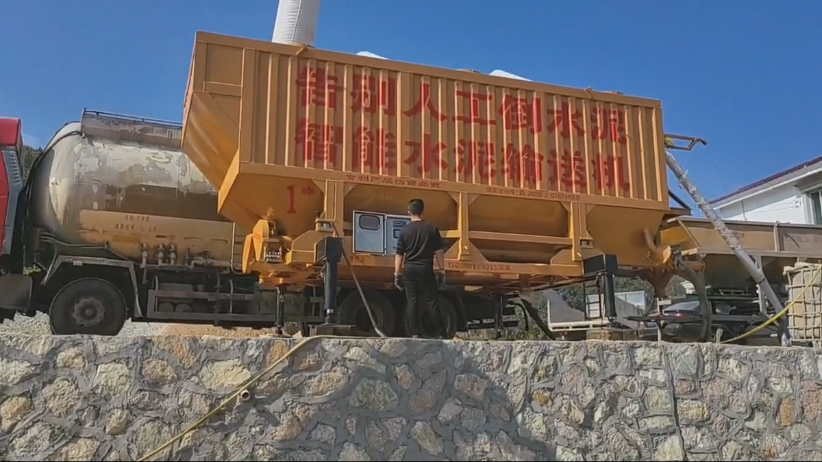 古河水泥輸送機配合翻斗式攪拌機進行輸送水泥的任務。