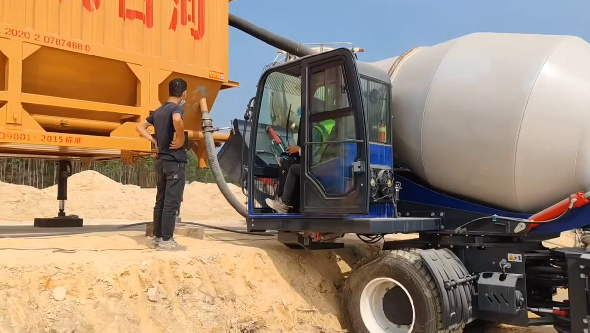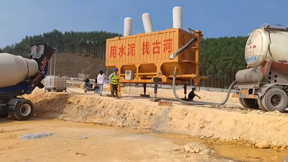 古河水泥輸送機搭配上料、攪拌、運輸一體機,只需要一個人就可以把混凝土制作好!