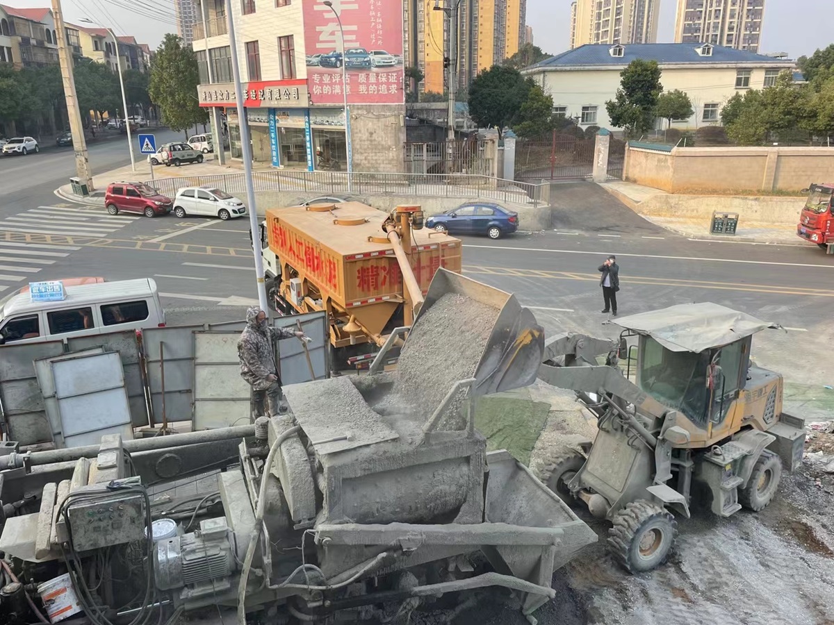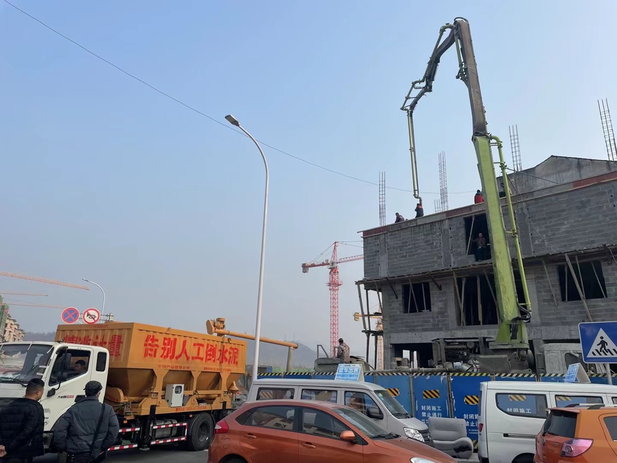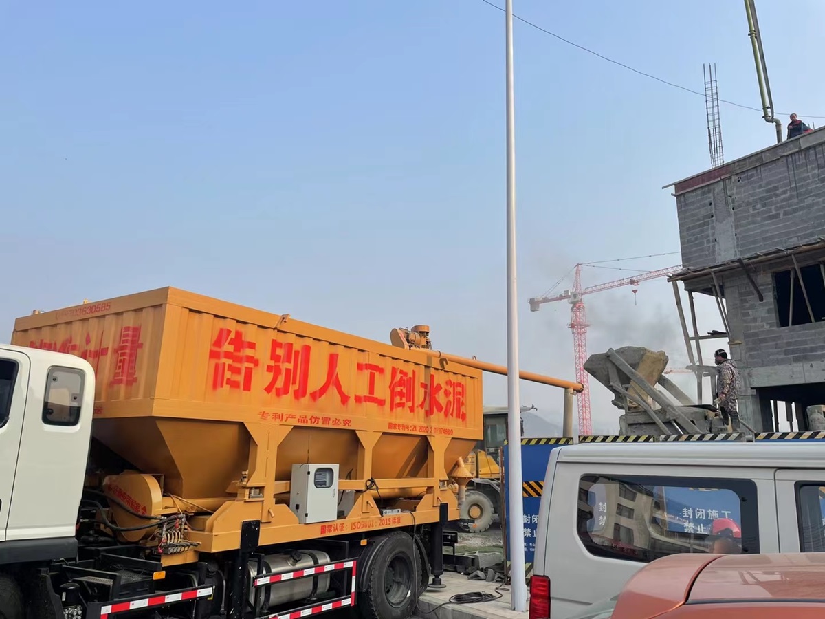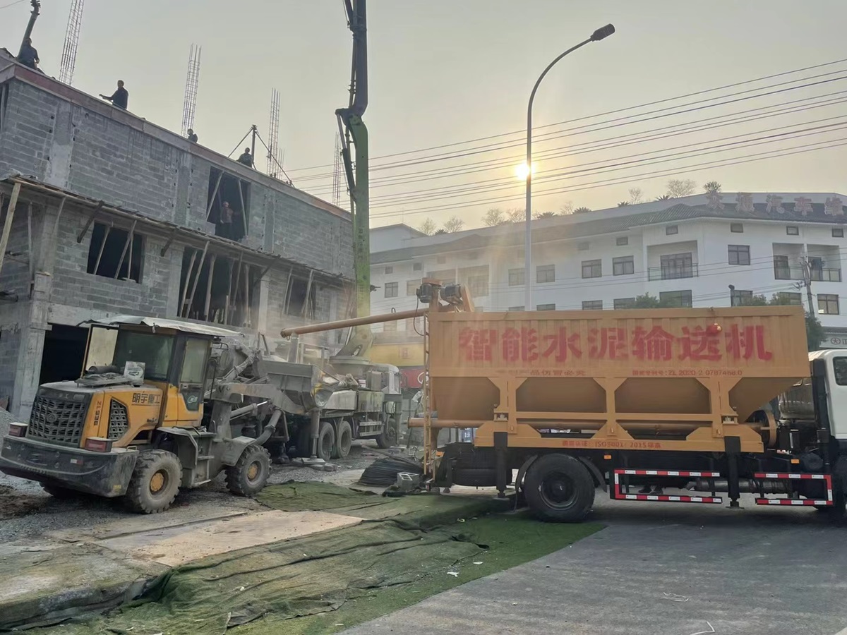 設(shè)備到達(dá)當(dāng)?shù)睾螅⒖掏度牍さ厥褂谩?br>古河水泥輸送車和臂架泵車完美配合施工!