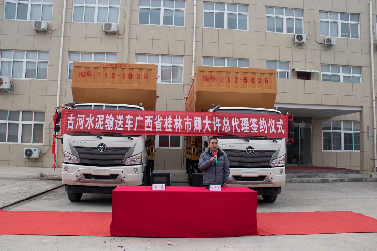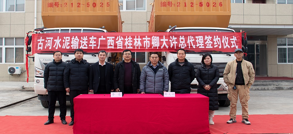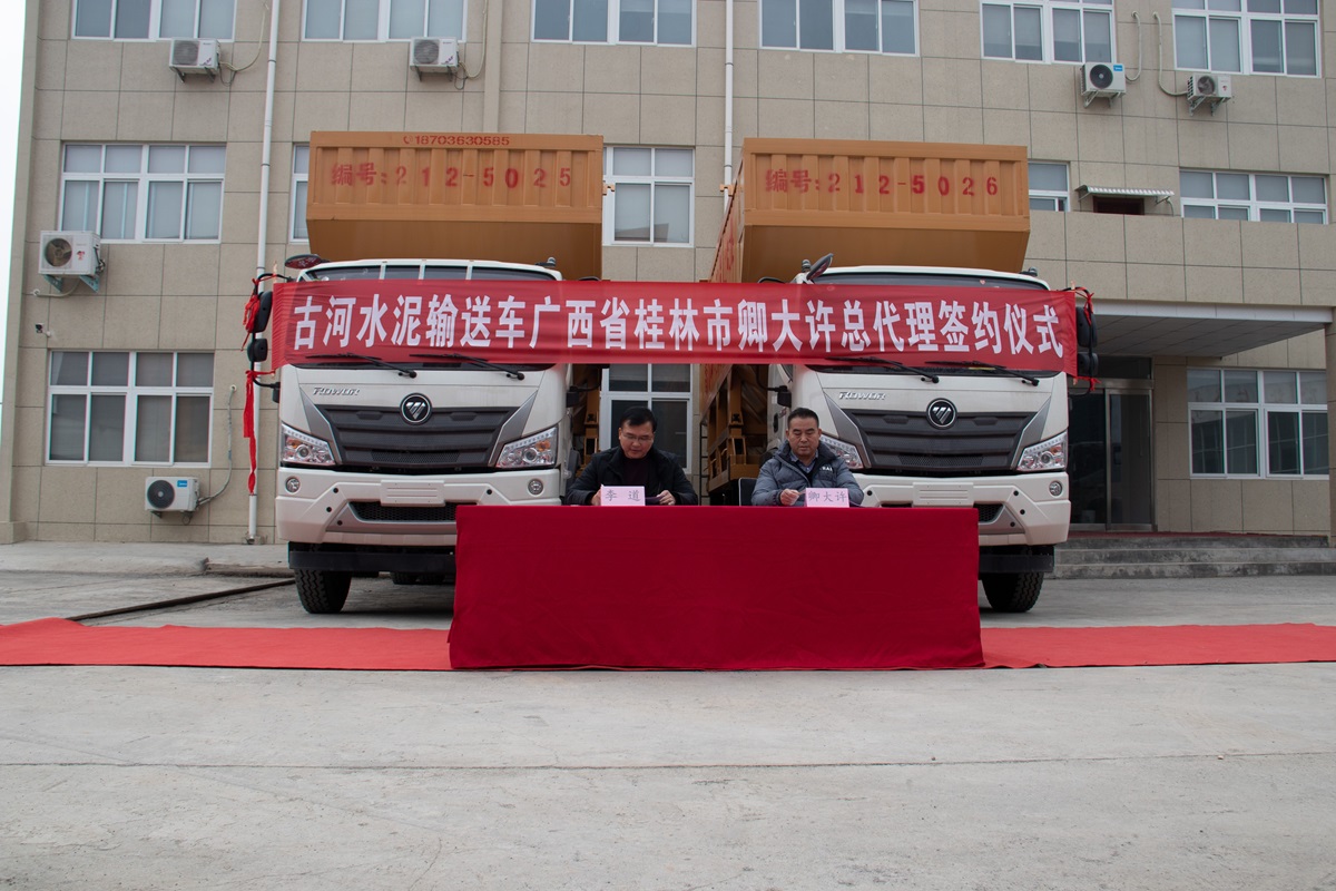 恭賀古河水泥輸送車廣西桂林總代理卿總簽約成功!首定1臺車,6臺水泥輸送機(jī)!